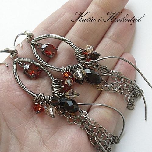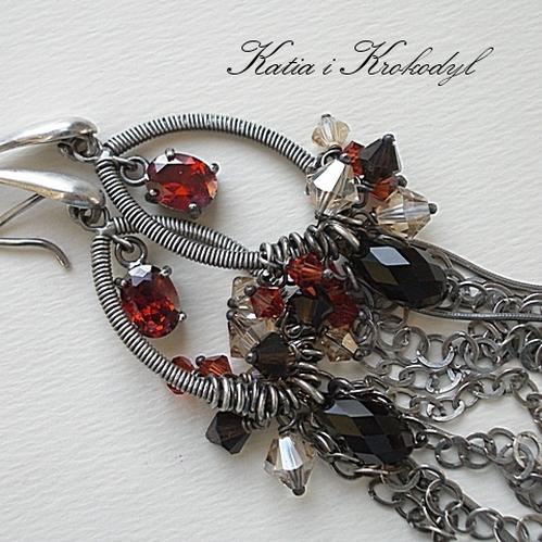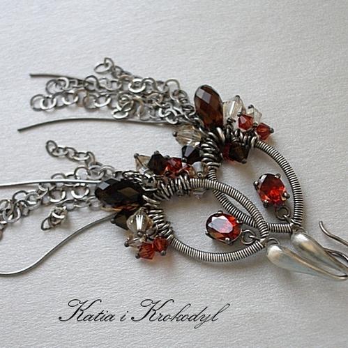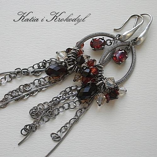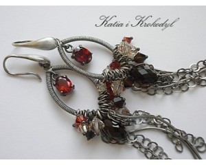 SPRZEDANE. Kolczyki ze srebra pr.925 w połączeniu z kryształkami Swarovskiego oraz granatami.