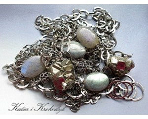 - SPRZEDANE - Naszyjnik ze srebra pr. 925 w połączeniu z labradorytami i pirytami.
